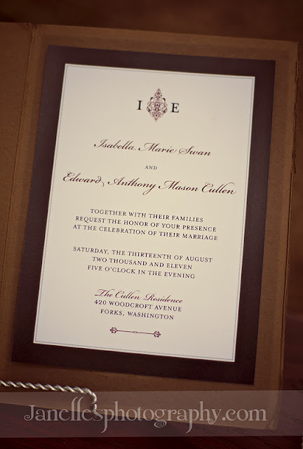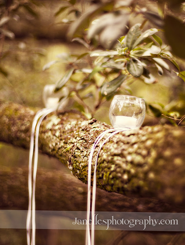 Melissa said– I’m a very big Twilight series fan and with the release of Breaking Dawn and the Cullen wedding I couldn’t wait to celebrate! I wanted to capture the wedding and decided on an outdoor photo shoot. Using the ‘Cullen’ name was key. My sweet friend Sandy of Firefly Confections assisted me with the styling of this and we were blessed to have worked with such a talented photographer, Janelles Photography. Janelle made our vision come to life and incorporated the perfect bride for the setting. Vendor Credits: